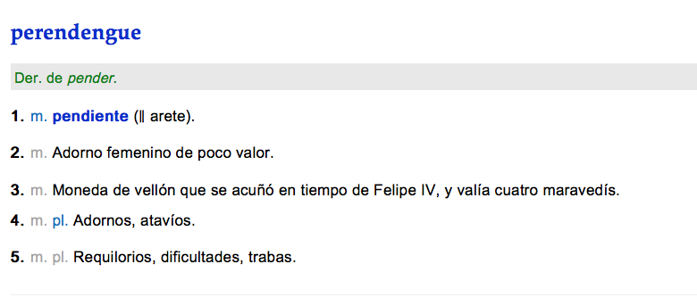 Hoy les traigo una palabra rara que se oye muy poco. Quizás incluso alguno de ustedes no la haya oído nunca. Según el Diccionario de la RAE perendengue significa: