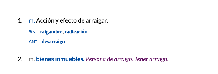 Según la Real Academia de la Lengua el significado de arraigo es: